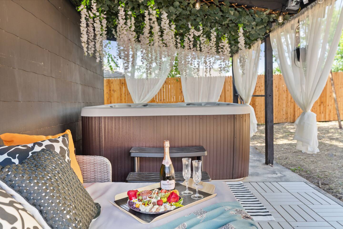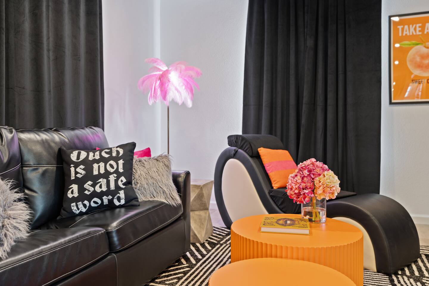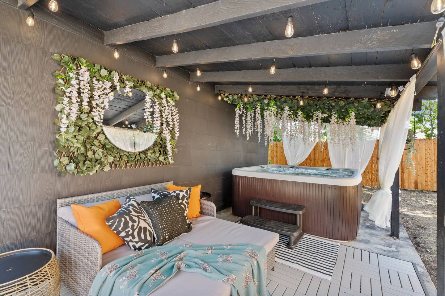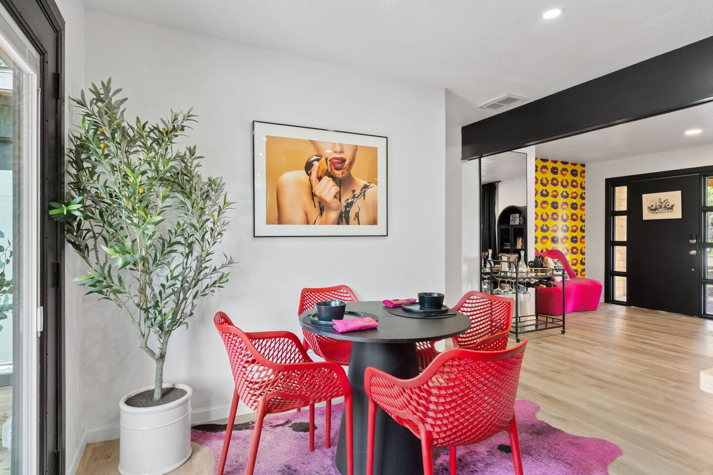 You’ll have the entire home and private backyard all to yourself—no shared spaces, no awkward encounters, no interruptions. From the moment you enter with your personal code, it’s your world. Lounge freely in the Red Room, soak under the stars in the spa, or disappear into plush bedding in the master suite. The queen pull-out sofa in the lounge is also yours to enjoy. Want to check in late? No problem. Need total privacy? It’s yours. Every inch of this seductive escape is for you (and your lucky guest or guests) alone.