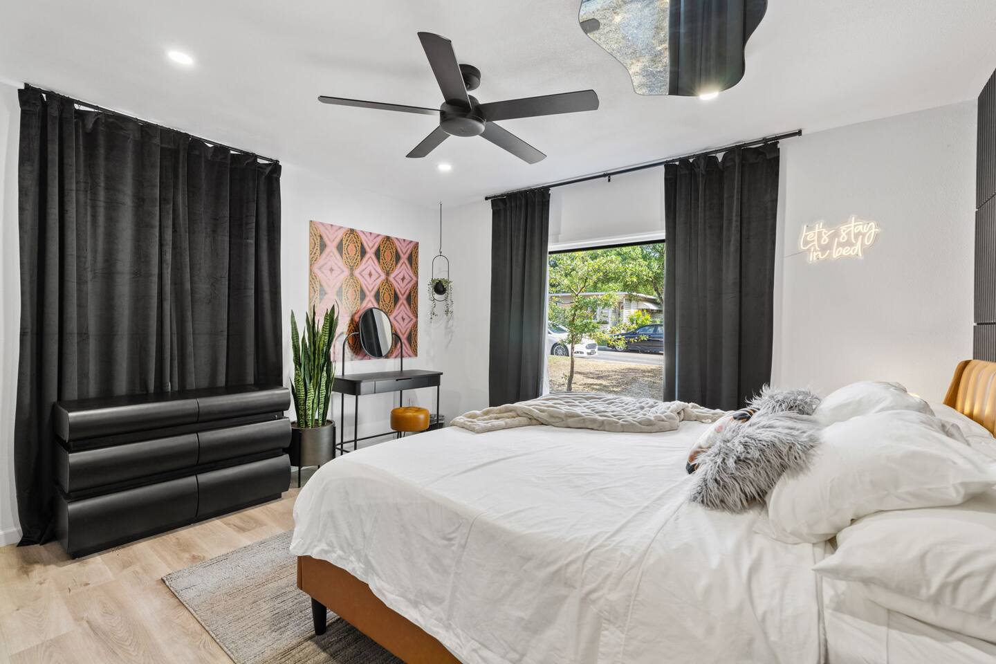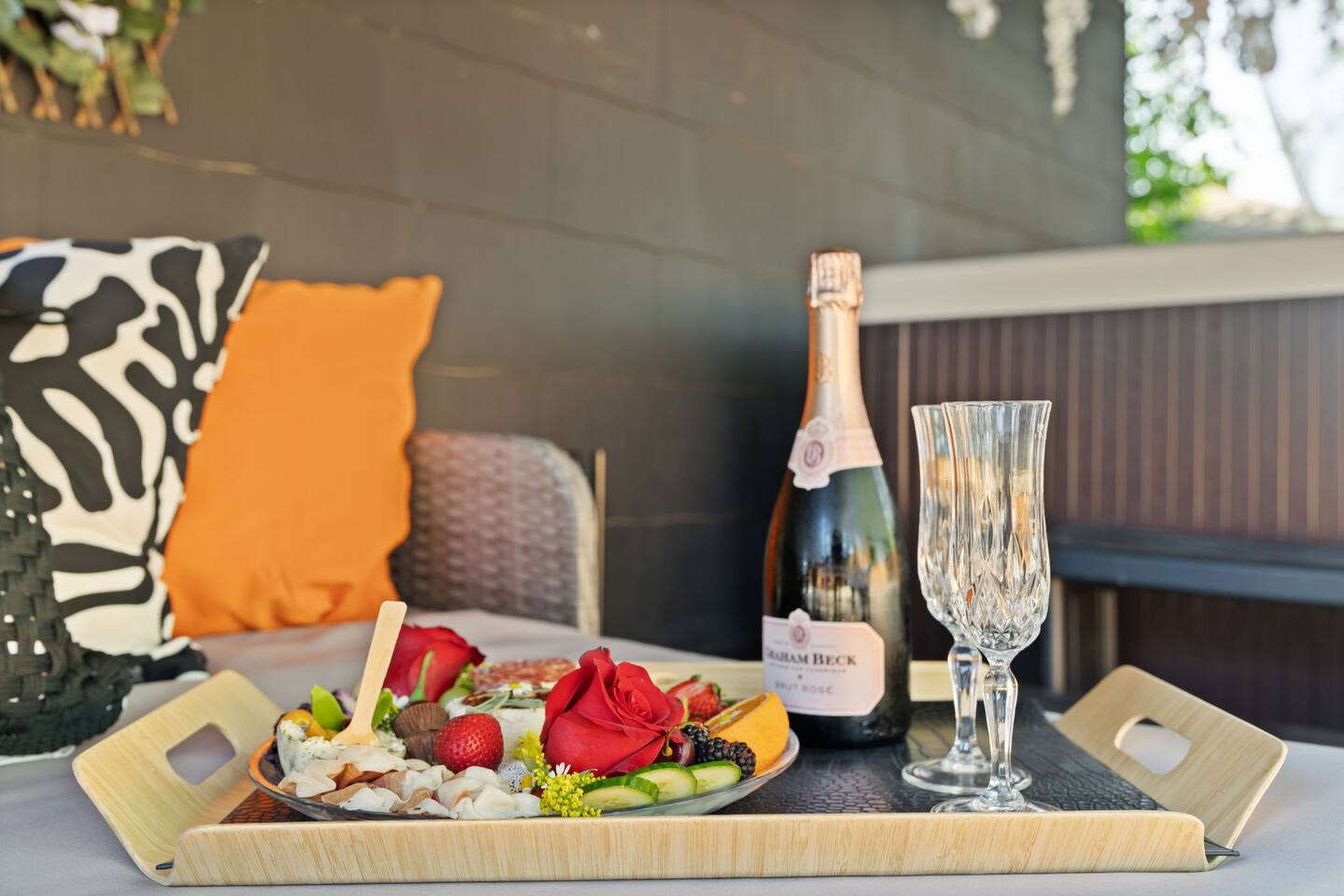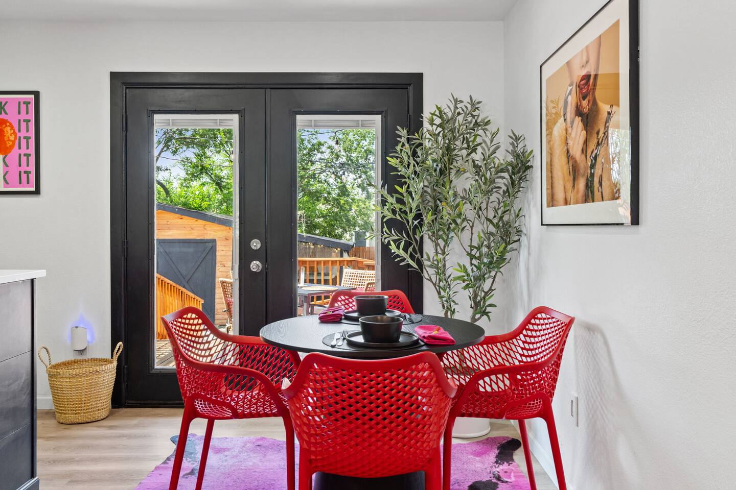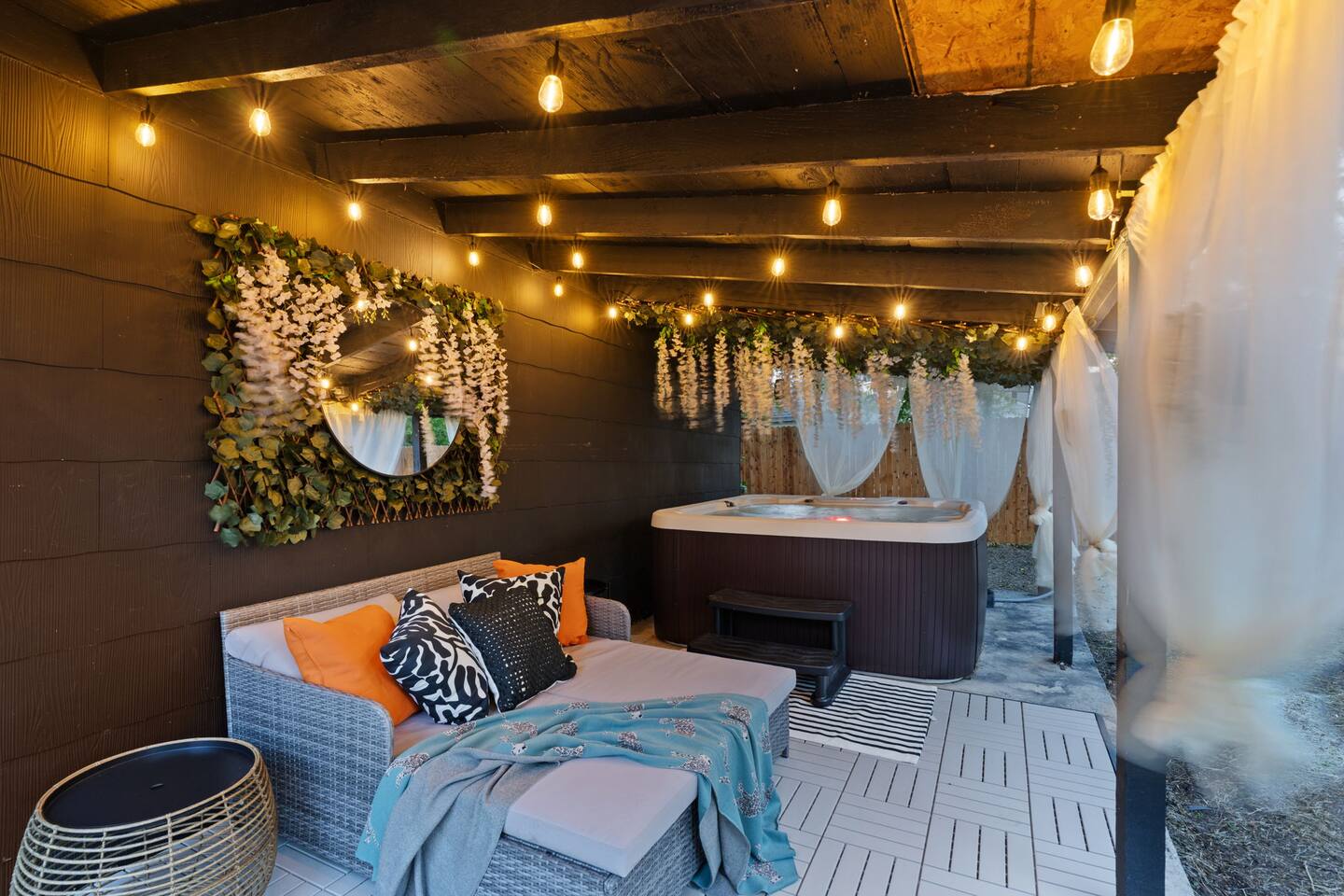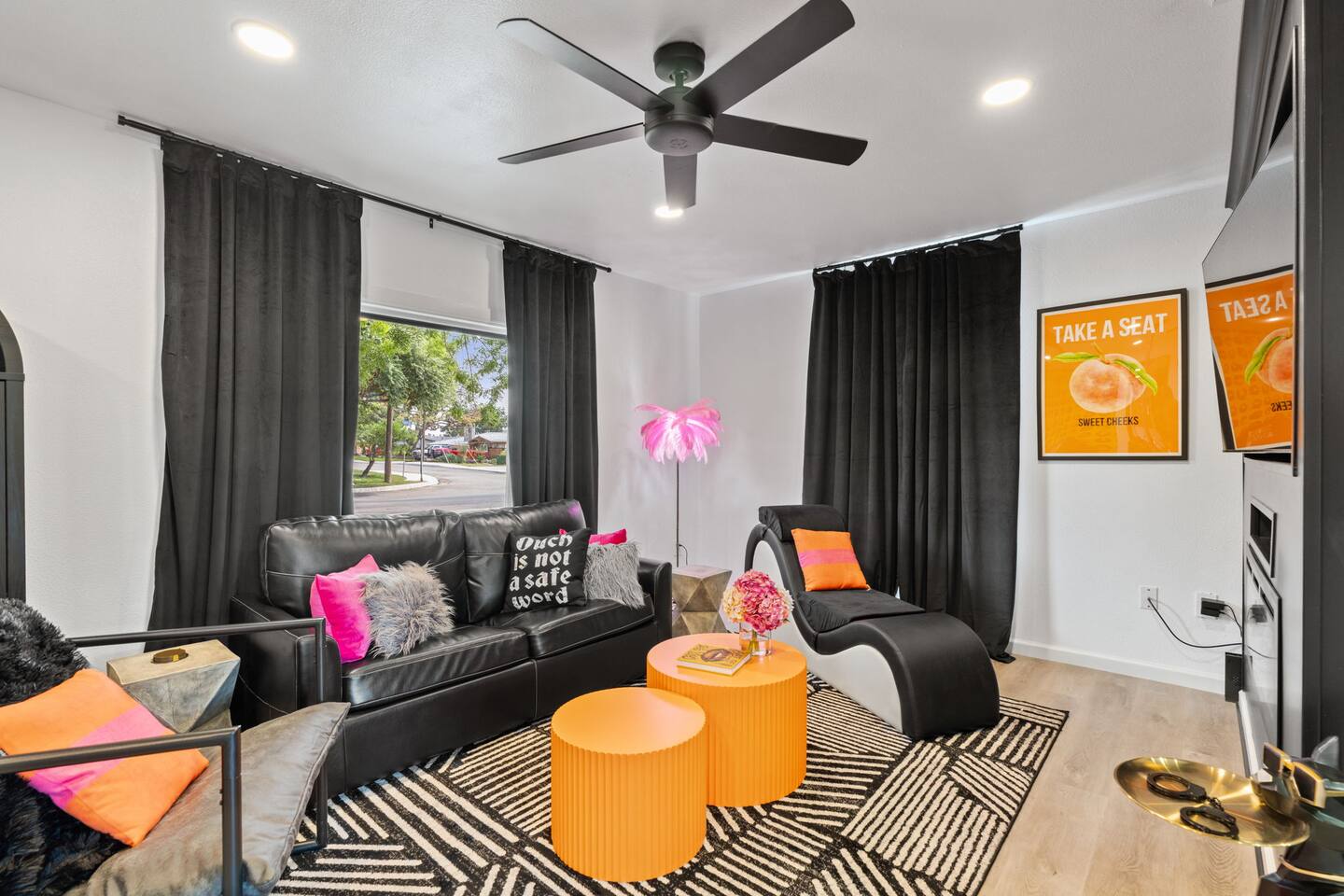 You’ll have the entire home and private backyard all to yourself—no shared spaces, no awkward encounters, no interruptions. From the moment you enter with your personal code, it’s your world. Lounge freely in the Red Room, soak under the stars in the spa, or disappear into plush bedding in the master suite. The queen pull-out sofa in the lounge is also yours to enjoy. Want to check in late? No problem. Need total privacy? It’s yours. Every inch of this seductive escape is for you (and your lucky guest or guests) alone.