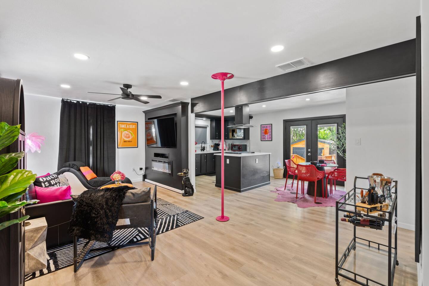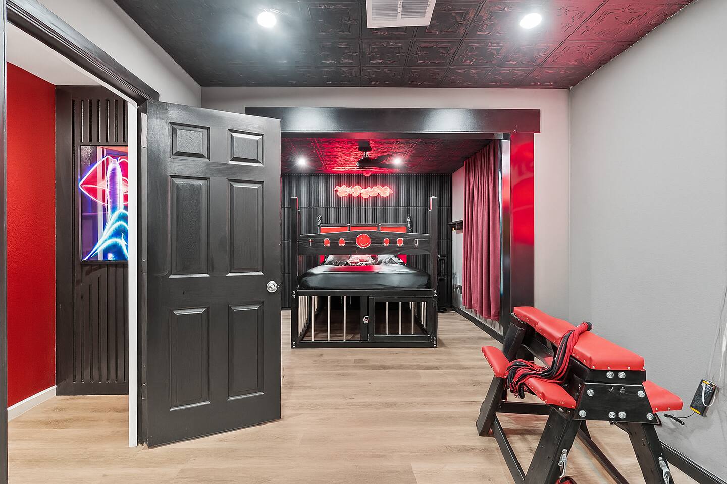 Desires Red Rooms | Private Couples Escape with Spa Vibes & Sultry Surprises Step behind closed doors and into a curated escape made for connection, indulgence, and uninhibited exploration. Welcome to Desires Red Rooms—a one-of-a-kind retreat designed exclusively for adventurous couples looking to unwind, reconnect, or spark something brand new. Tucked away in a quiet San Antonio neighborhood, this private home offers an immersive, adult-only experience that blends luxury with play. Whether you’re celebrating an anniversary, staging a seductive staycation, or just craving time away from the world, this space was built for pleasure, comfort, and a little mischief. Immaculately Clean, Every Time We take cleanliness as seriously as we take pleasure. Every inch of Desires Red Rooms is meticulously cleaned and sanitized between each guest—linens are freshly laundered, surfaces are disinfected, and every detail is inspected with care. Our standards are high, because your peace of mind is part of the experience. You bring the heat—we’ll handle the hygiene. What Awaits Inside: - A moody, seductive Red Room lounge—perfectly styled for connection, conversation, and exploration - A plush king-size bed dressed in high-end linens (because pleasure starts with comfort) - A queen pull-out sofa bed in the livingroom - Outdoor hot tub cabana lit with ambient glow for late-night unwinding - Curated lighting, mirrors, and textures designed to set the mood - Sensual art, discreet props, and playful touches (we suggest...a slow wander) - Smart TV, high-speed WiFi, and Bluetooth speaker for your playlist of choice - Fully equipped kitchen + coffee station to fuel your mornings (or recover from your nights) Outside Vibes: Your own private backyard hideaway awaits—complete with cozy string lights and the bubbling spa to soak under the stars. It’s all yours. No shared spaces. No interruptions. Self Check-In & Discreet Access Enter with your personal code—no need for small talk. The door unlocks with a soft click and re-locks 30 seconds later, keeping your getaway safe and private. Please Note: This is an adults-only experience. You must be 18+ to book. We kindly ask that all guests respect the space, the neighbors, and the vibe. What happens at Desires Red Rooms... stays with you. Always.